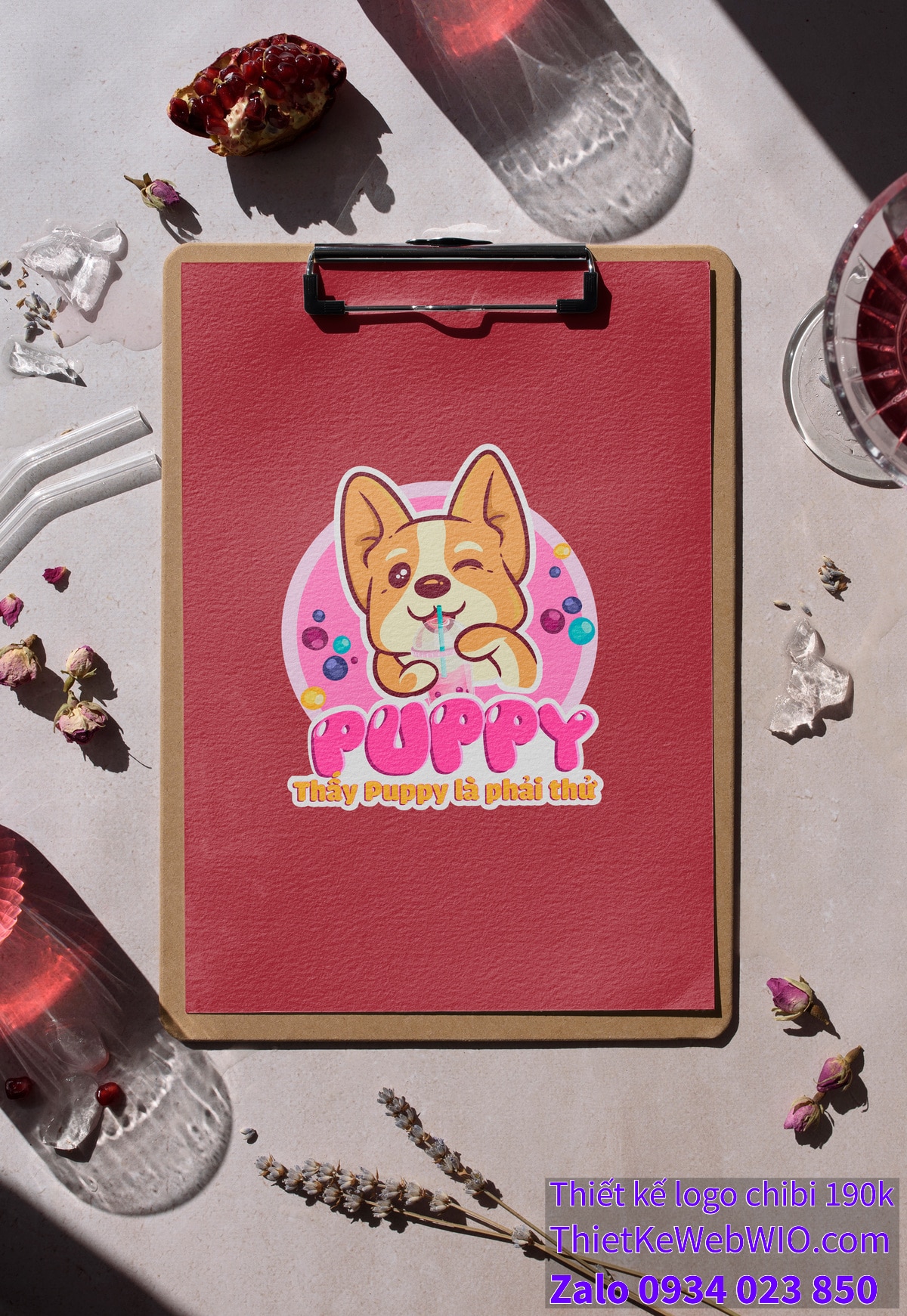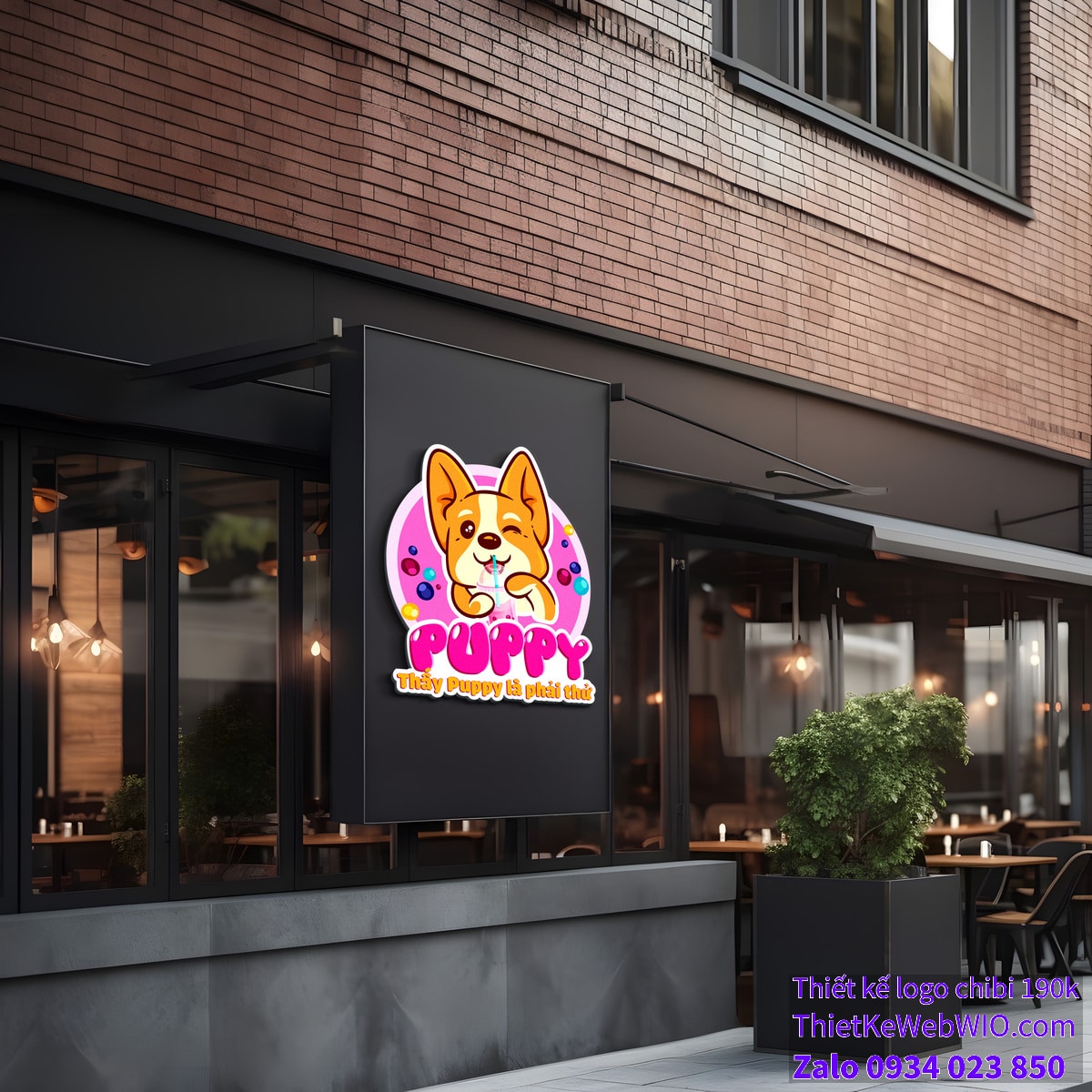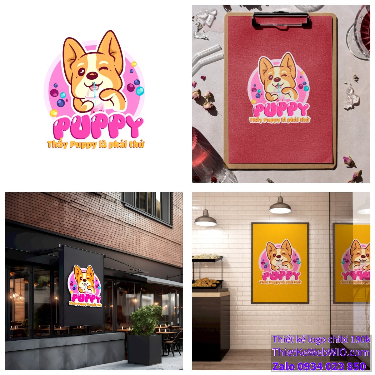 Bức ảnh chibi của chú chó dễ thương uống trà sữa không chỉ mang lại cảm giác vui vẻ, dễ thương mà còn tạo nên một dấu ấn mạnh mẽ và dễ nhớ cho thương hiệu. Thiết kế này chắc chắn sẽ thu hút sự chú ý của khách hàng và để lại ấn tượng tốt.