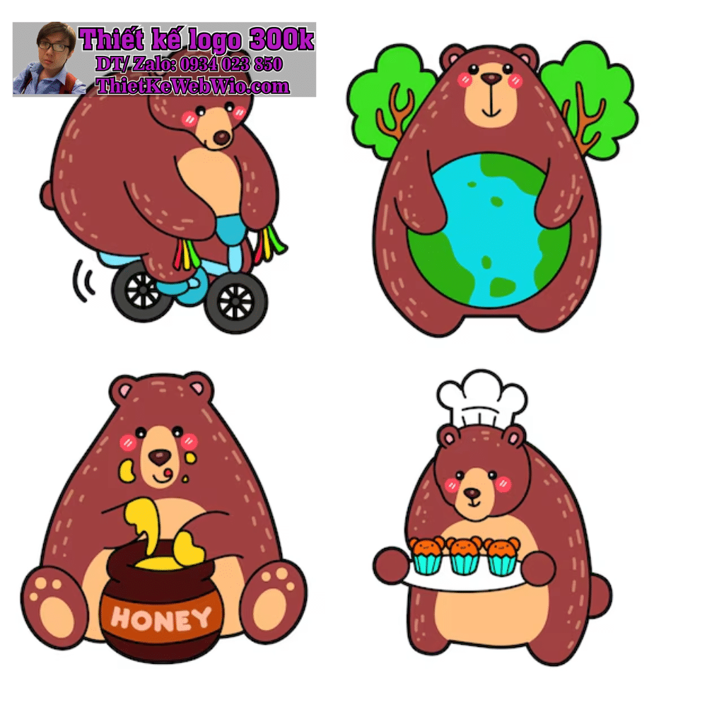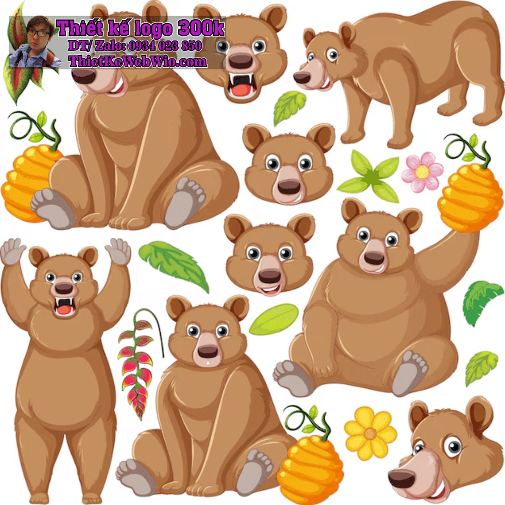 Hình ảnh Gấu hoạt hình (bear cartoon) là nguồn cảm hứng lớn cho các nhà thiết kế. Từ việc cách điệu hình dáng, biểu cảm khuôn mặt, đến việc thêm các phụ kiện đáng yêu như mũ, khăn choàng, hoặc đôi mắt kính, mỗi thiết kế đều mang nét độc đáo riêng.