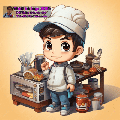 Vẽ chibi thể hiện một cậu bé đầu bếp đáng yêu với vẻ tự tin,...
