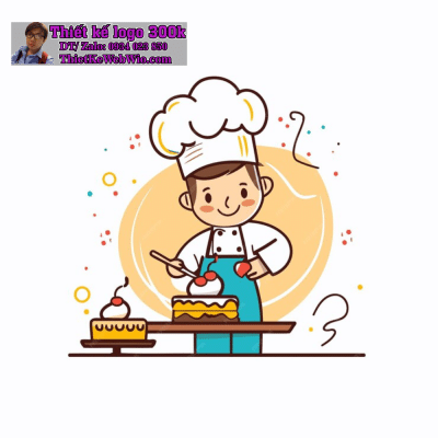 Vẽ chibi thể hiện một cậu bé đầu bếp đáng yêu với chiếc bánh vừa...