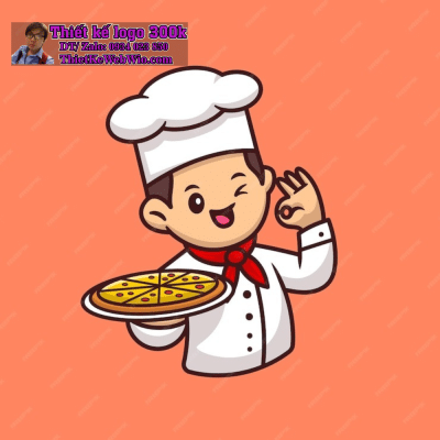Vẽ chibi thể hiện một đầu bếp đang tự hào với chiếc pizza nóng hổi...