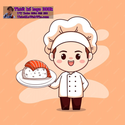 Vẽ chibi thể hiện một cậu bé đầu bếp đáng yêu đang cầm đĩa sushi...