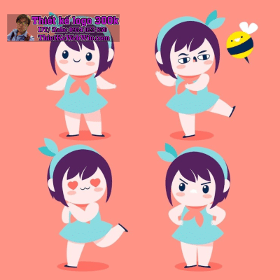 Vẽ chibi thể hiện một bé gái với mái tóc tím và bộ váy xanh,...