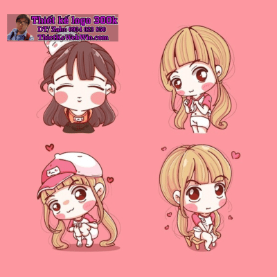 Hình ảnh chibi thể hiện bốn cô gái với những phong cách khác nhau, mang...