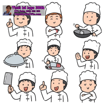 Hình ảnh chibi này thể hiện nhiều đầu bếp trong những tư thế và hoạt...