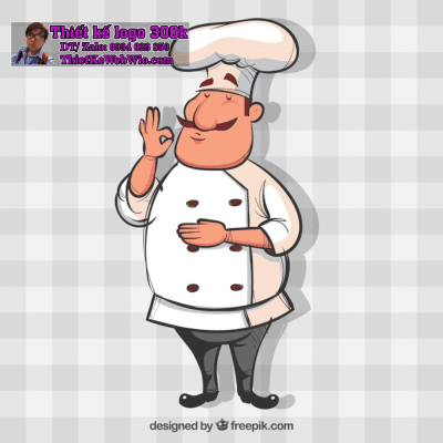 Hình ảnh chibi thể hiện một cậu bé đầu bếp đáng yêu đang vẫy tay...