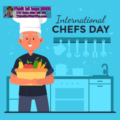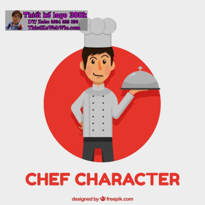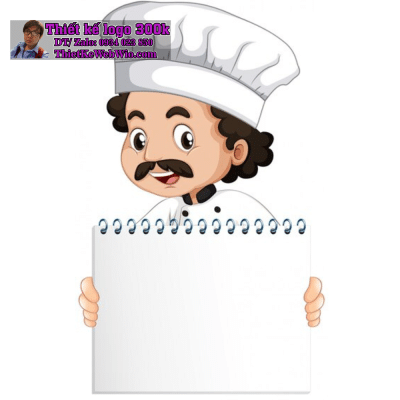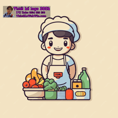 Vẽ chibi thể hiện một cậu bé đầu bếp đang đứng bên cạnh các nguyên...