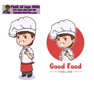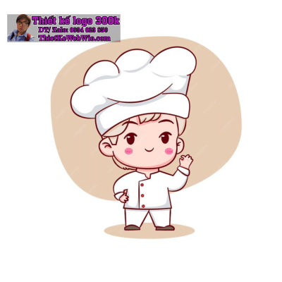 Hình ảnh chibi thể hiện một cậu bé đầu bếp với phong cách vui nhộn,...