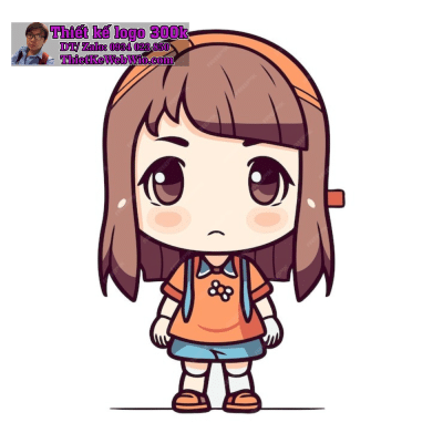 Hình ảnh chibi cô bé đáng yêu với mái tóc nâu, mặc áo cam và...