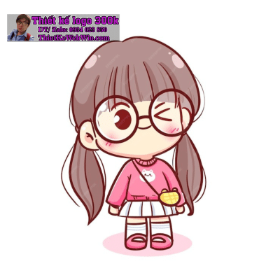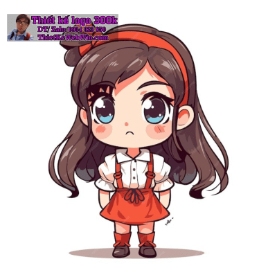 Vẽ chibi thể hiện một cô bé đáng yêu với mái tóc nâu dài, mặc...