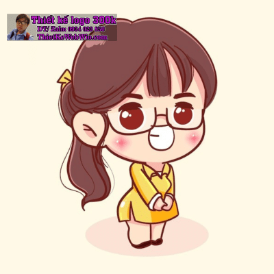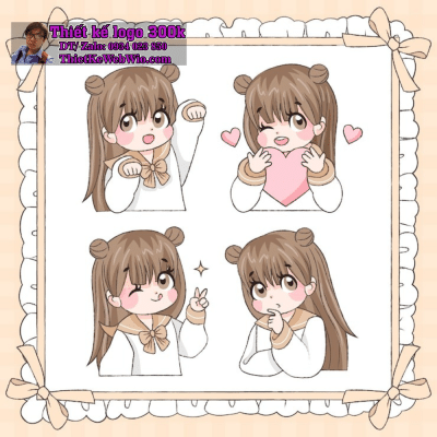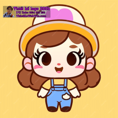 Vẽ chibi thể hiện một cô bé dễ thương với mái tóc nâu dài và...