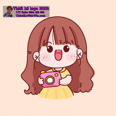 Hình ảnh chibi của cô bé tóc dài, mặc váy vàng và cầm máy ảnh...