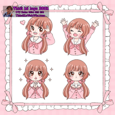 Hình ảnh chibi cô bé dễ thương với mái tóc nâu bện thành hai bím,...