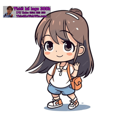 Vẽ chibi thể hiện một cô bé với mái tóc nâu dài và trang phục...