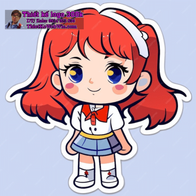 Vẽ chibi thể hiện một cô bé học sinh với mái tóc đỏ và trang...