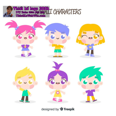 Vẽ chibi thể hiện một nhóm các nhân vật với tóc nhiều màu sắc khác...