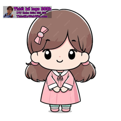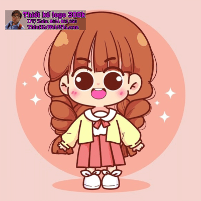 Hình ảnh chibi mô tả một bé gái dễ thương với mái tóc nâu dài,...
