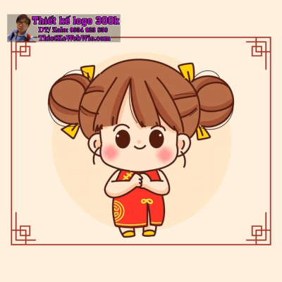 Hình ảnh chibi cô bé dễ thương mặc trang phục truyền thống màu đỏ, tóc...