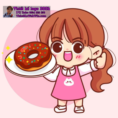 Hình ảnh cô bé chibi đang cầm đĩa bánh donut với niềm vui rạng ngời...