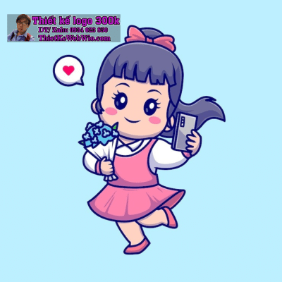 Hình ảnh chibi này thể hiện một cô bé dễ thương đang cầm hoa và...