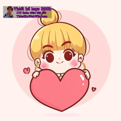Hình ảnh cô bé chibi cầm trái tim hồng lớn với vẻ mặt hạnh phúc...