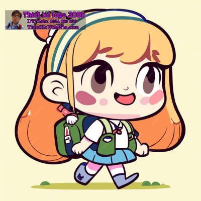 Hình ảnh mô tả một bé gái chibi đáng yêu đang vui vẻ đi học...