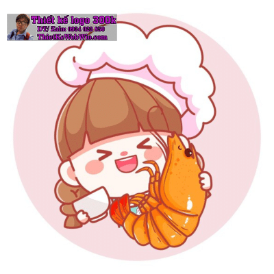 Vẽ chibi cô bé đầu bếp đang cầm một con tôm hải sản khổng lồ...