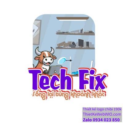 Đặc điểm chung của tấm ảnh: Tấm ảnh chibi chú bò đang sửa chữa máy...
