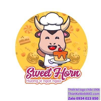 Tấm ảnh chibi chú bò đầu bếp dễ thương bán bánh ngọt này nổi bật...