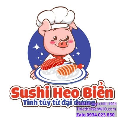 Tấm ảnh chibi chú heo đầu bếp cầm đĩa sushi này nổi bật với hình...