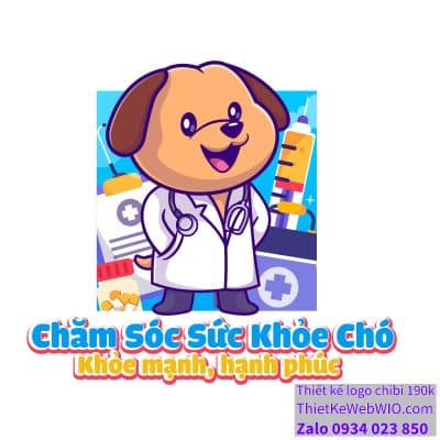 Tấm ảnh chibi chú chó mặc áo blouse khám sức khỏe mô tả một...