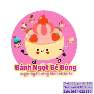 Tấm ảnh chibi chiếc bánh kem dâu tây sinh động bên nhiều chiếc bánh kem...