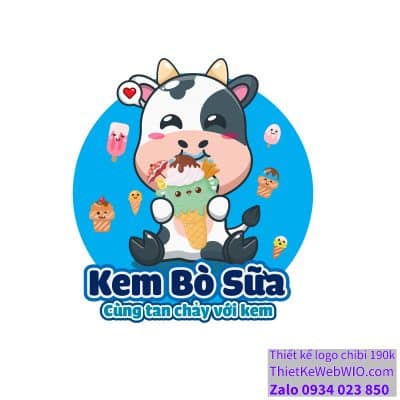 Tấm ảnh chibi chú bò sữa đang ăn kem vui vẻ là một hình minh...