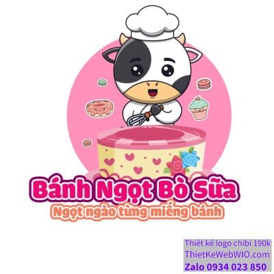 Tấm ảnh chibi chú bò sữa đội mũ đầu bếp đang làm bánh là một...