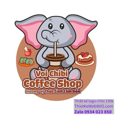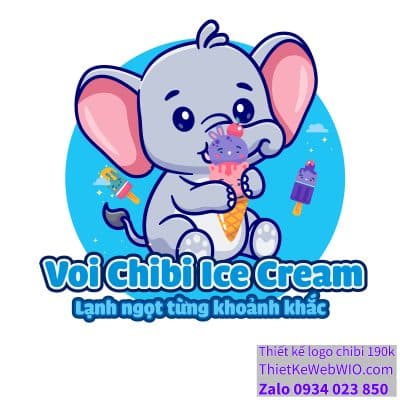 Trong hình ảnh chibi chú voi xanh với đôi tai hồng dễ thương đang ăn...