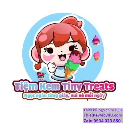 Bức ảnh chibi cô gái với mái tóc hồng dễ thương đang ăn kem vui...