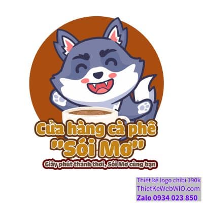 Bức ảnh chibi sói xám đang cười vui vẻ bên ly cà phê là một...