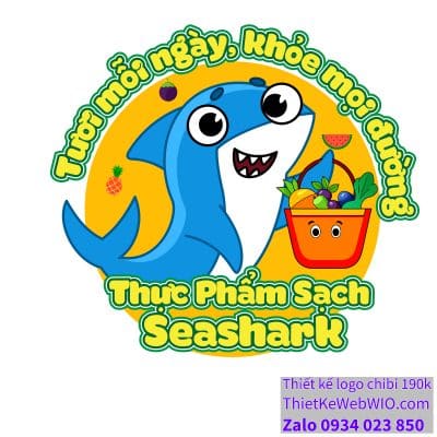 Tấm ảnh chibi chú cá mập xanh đang cầm giỏ rau củ sạch là một...