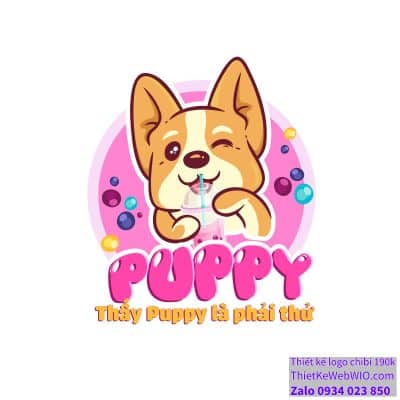 Bức ảnh chibi chú chó màu vàng uống trà sữa đang cười vui vẻ mô...