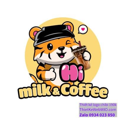 Bức ảnh chibi chú hổ vàng đeo mũ đen bán trà sữa là một biểu...