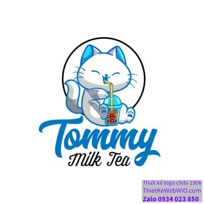 Tấm ảnh chibi chú mèo Tommy lông xanh trắng dễ thương uống trà sữa là...