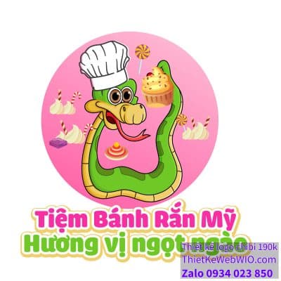 Bức ảnh chibi chú rắn đầu bếp bán bánh ngọt là một hình ảnh sinh...