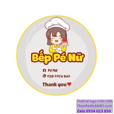 Hình ảnh chibi đầu bếp nữ với mái tóc ngắn đang cười vui vẻ bên...