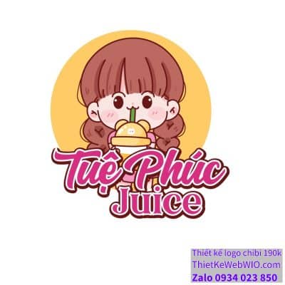 Tấm ảnh chibi bé gái với bím tóc dễ thương đang uống trà trái cây...
