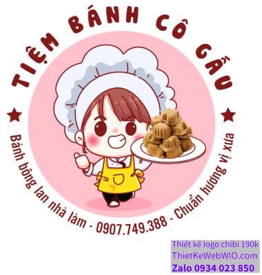 Tấm ảnh chibi cô gái đầu bếp bán bánh kem là một minh họa sinh...
