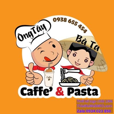 Tấm ảnh chibi đầu bếp nam cầm đĩa pizza là một thiết kế logo sáng...