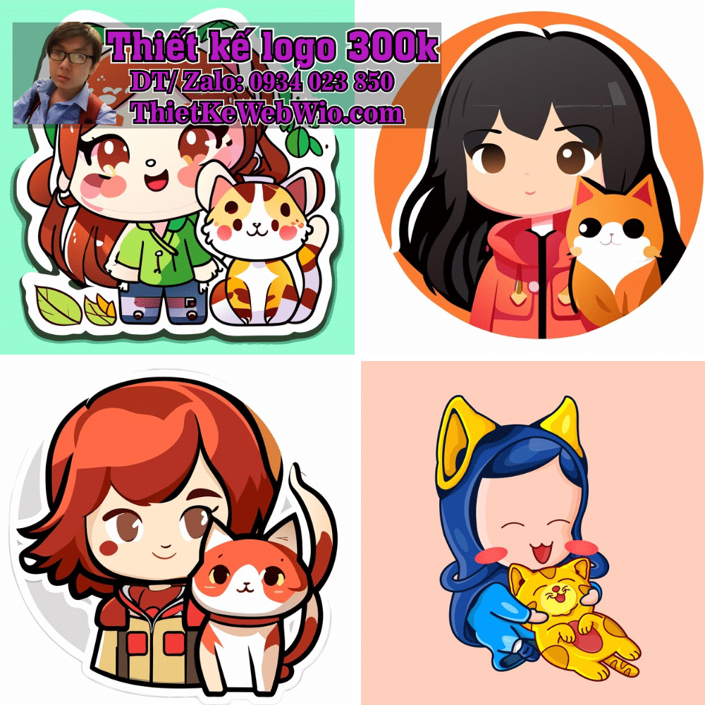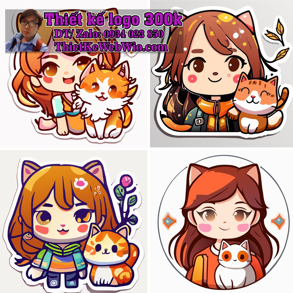 4.2 Cô Gái Chibi Với Áo Hoodie Mèo Trong Thiết Kế Nhãn Dán Và Sản Phẩm Trang Trí