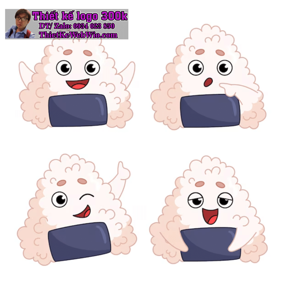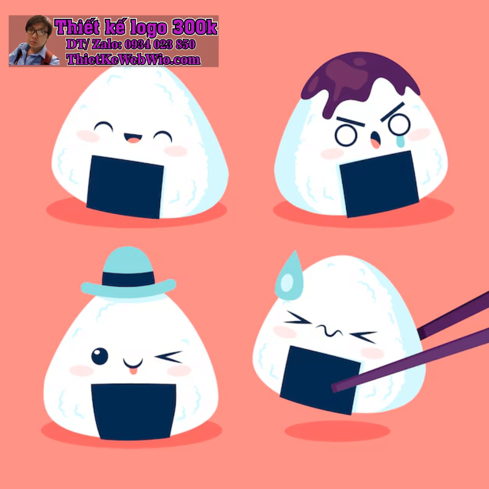 Onigiri, món cơm nắm nổi tiếng của Nhật Bản, thường được thể hiện trong phong cách cơm hoạt hình (Rice Cartoon) với hình dạng tam giác đặc trưng, kết hợp với những khuôn mặt vui nhộn hoặc dễ thương. Hình ảnh này không chỉ giúp làm phong phú thêm cách nhìn về ẩm thực Nhật Bản mà còn tạo sự thích thú cho người xem.