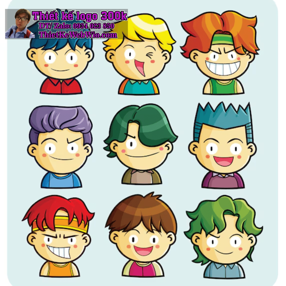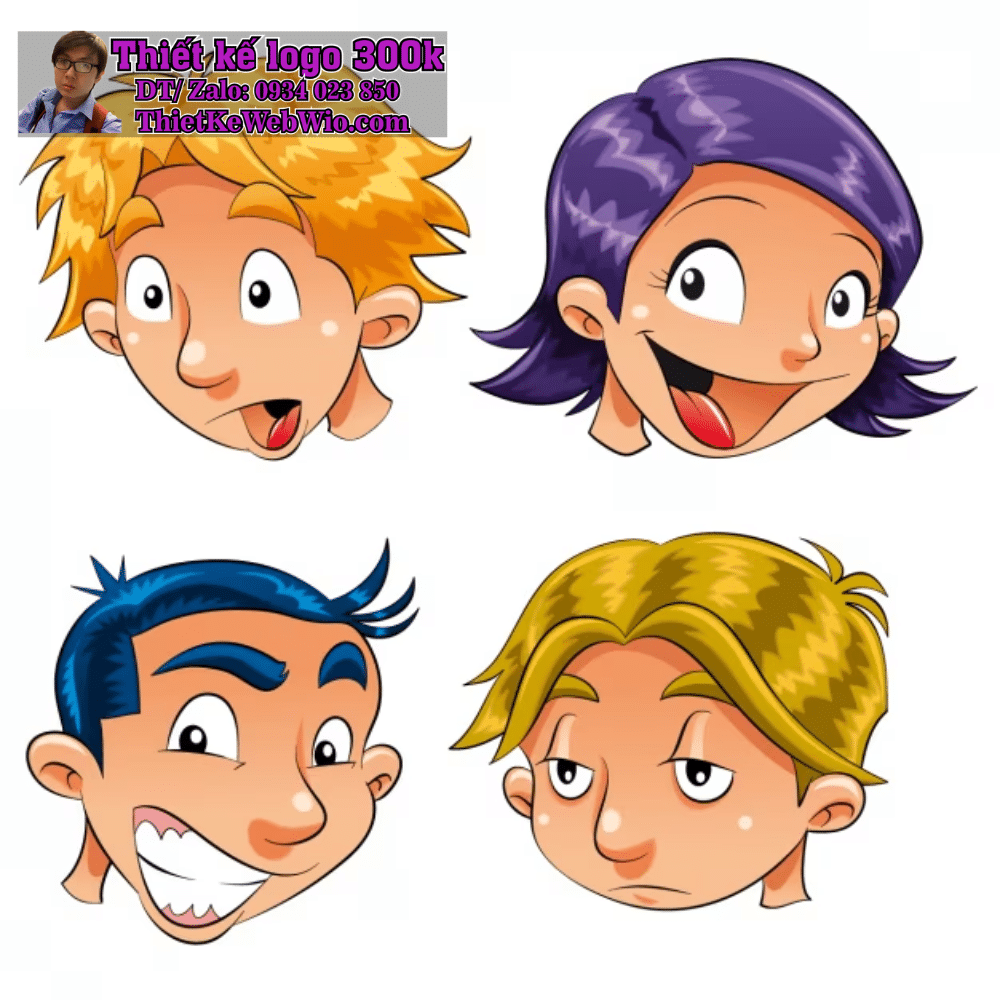 Hình ảnh Đầu hoạt hình (head cartoon) thường được sử dụng trong thiết kế logo để làm nổi bật thương hiệu. Những logo này thường mang lại cảm giác vui tươi, thân thiện và dễ nhận diện, phù hợp với các sản phẩm hoặc dịch vụ hướng đến trẻ em hoặc gia đình.