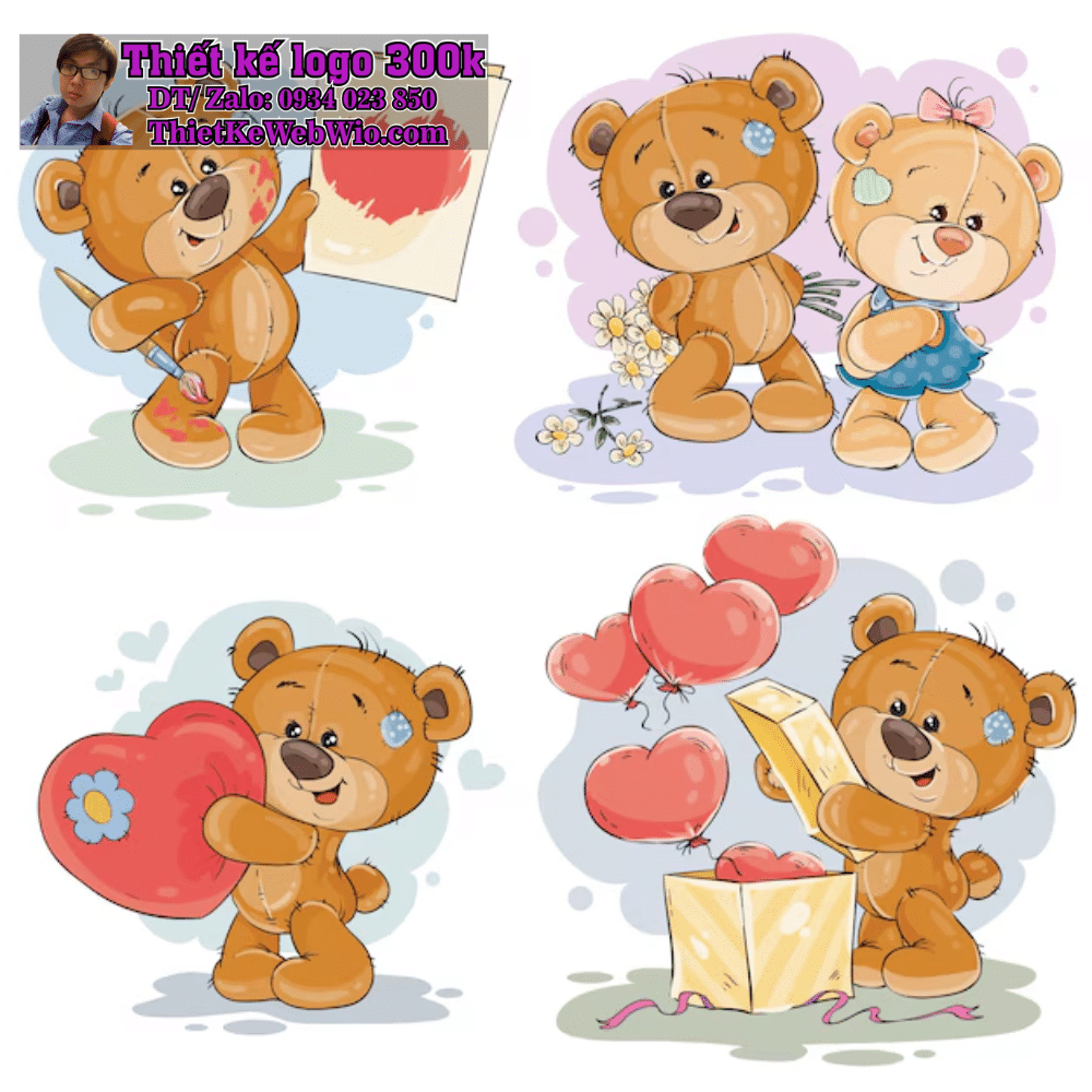 Trong thiết kế logo hoặc bao bì sản phẩm, Gấu bông hoạt hình (teddy bear cartoon) giúp làm nổi bật thương hiệu và tạo dấu ấn mạnh mẽ trong tâm trí khách hàng. Hình ảnh gấu bông hoạt hình không chỉ tạo sự khác biệt mà còn làm tăng tính nhận diện và giá trị thương hiệu.